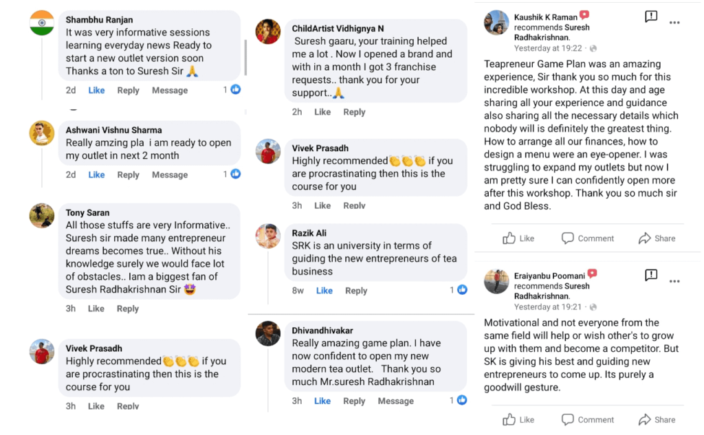 “This workshop made starting my own tea outlet so easy! I had no business experience, but within 30 days, I launched my shop while keeping my job. Highly recommend to anyone serious about starting their own business!”